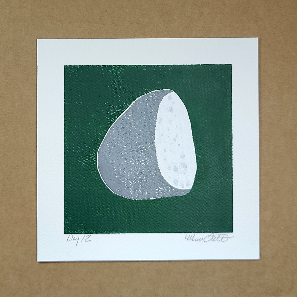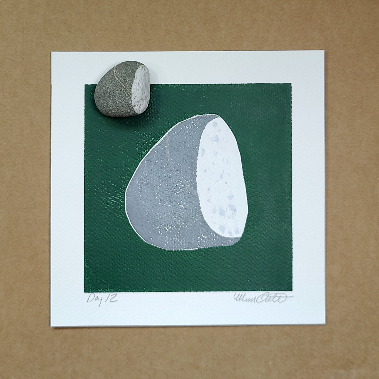 "Day 12" is a gel printed rock from my 100-day project of rocks in Spring 2025. Each piece from this series is on 8" x 8", 140lb—cold-press watercolor paper.