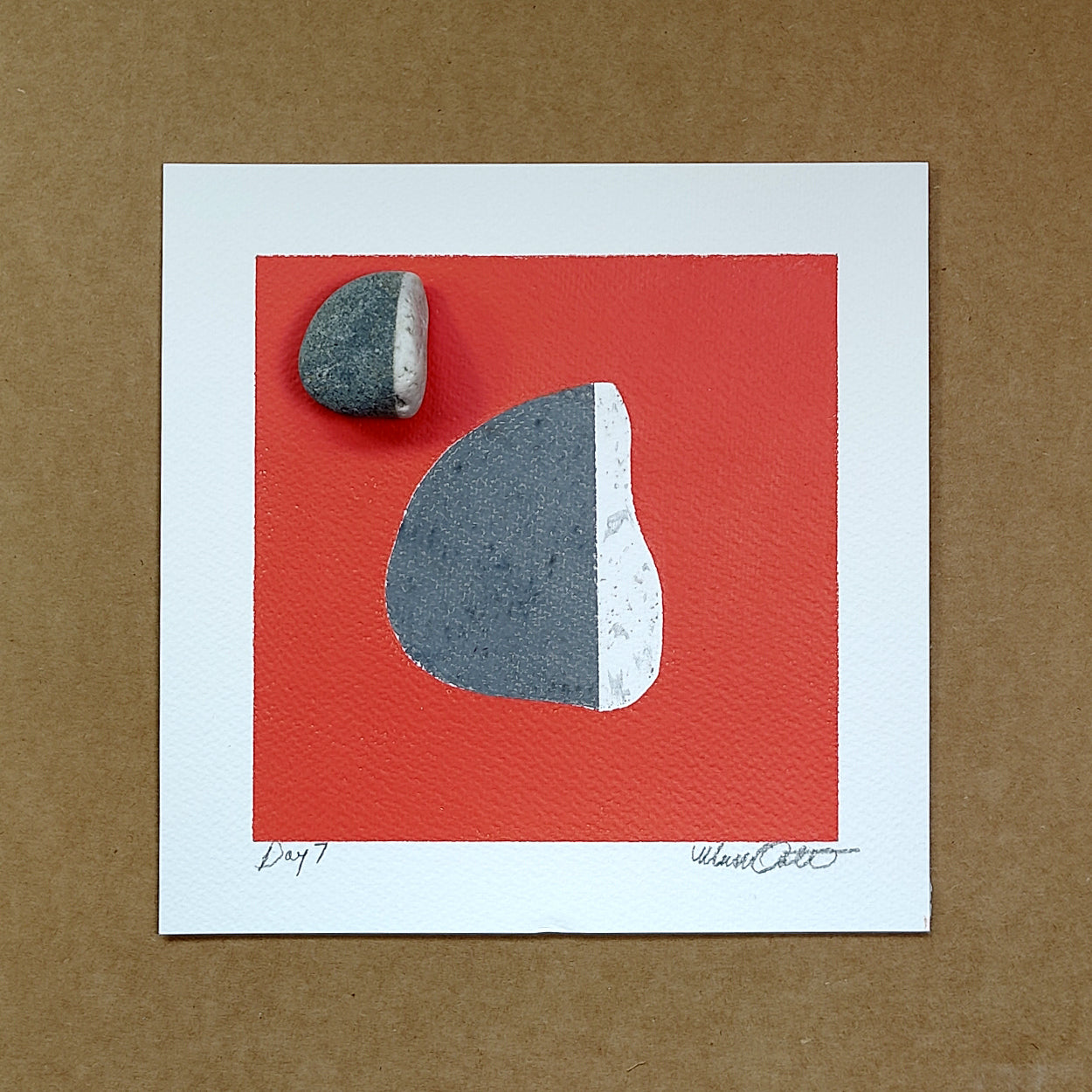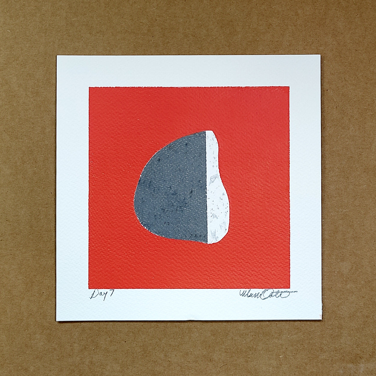 "Day 7" is a gel printed rock from my 100-day project of rocks in Spring 2025. Each piece from this series is on 8" x 8", 140lb—cold-press watercolor paper.