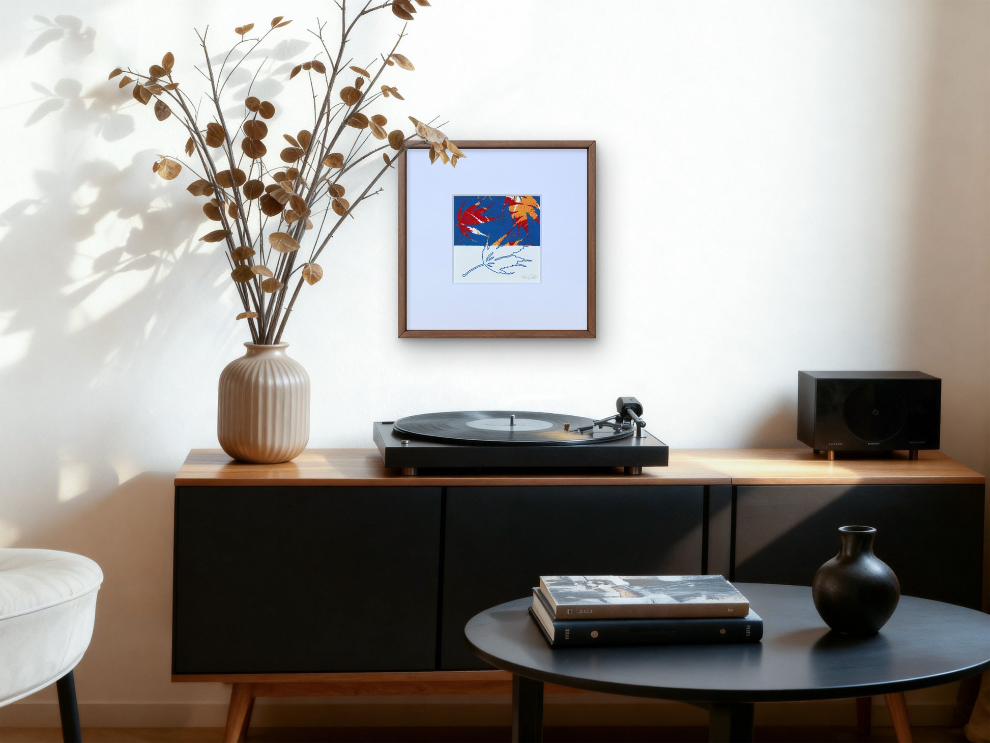 It comes with a crisp white mat, ready to pop into a 12" x 12" frame of your choice.