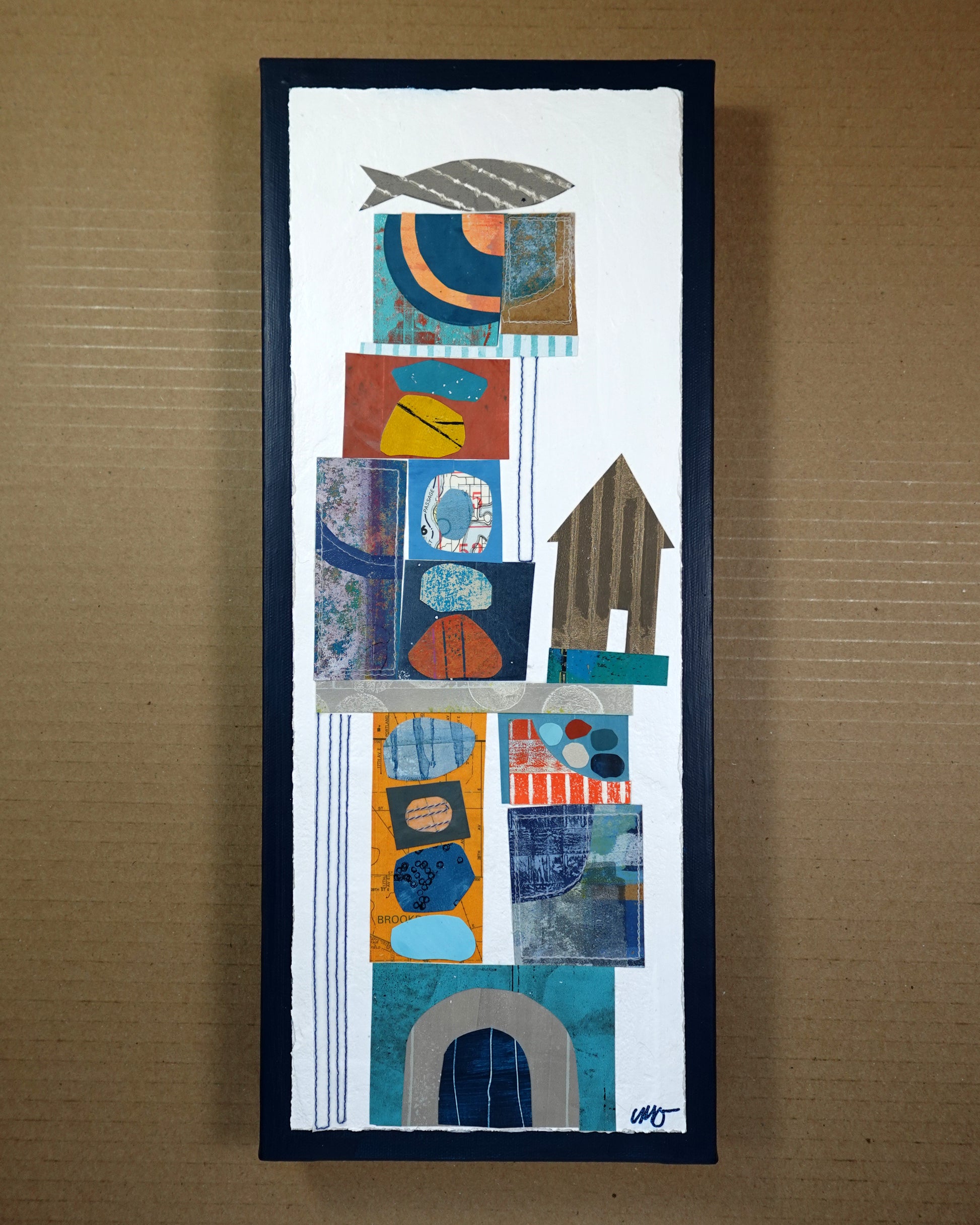 It has been sealed with multiple coats of matte varnish. The backside is signed and wired for hanging. To understand more about the creation of this series and the meaning behind my stacked compositions, please visit this blog post.