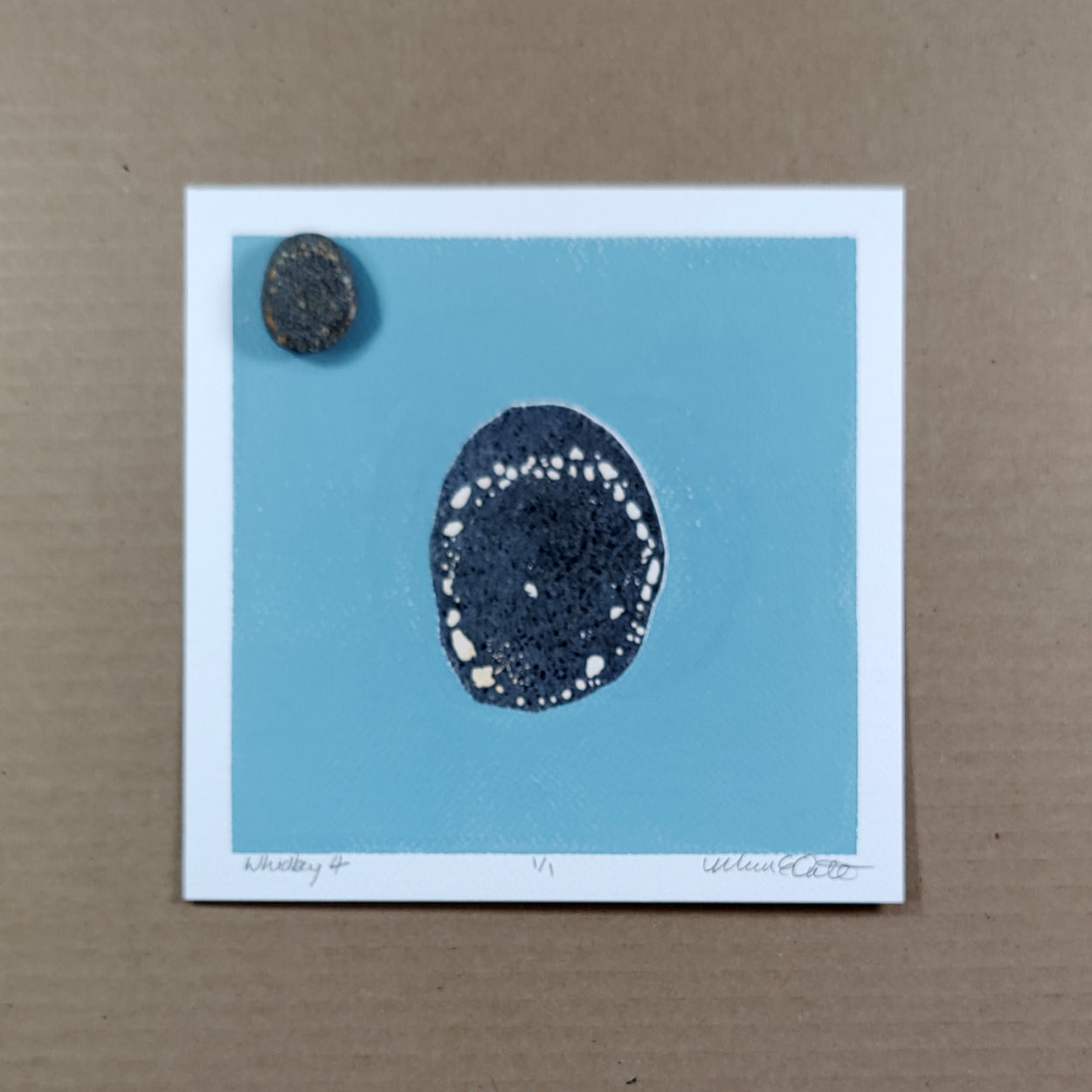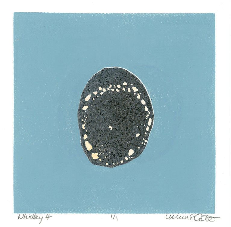 This printmaking method primarily uses acrylic paint, but some of my rocks use mixed media printing techniques such as oil pastel resists, soft pastel or charcoal transfers, or acrylic markers.
